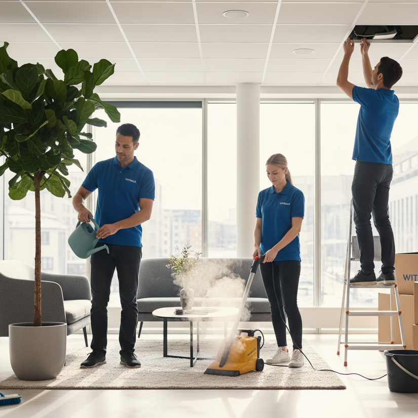 Städning och underhåll av arbetsplatser och kontorsutrymmen. Skapar en ren, hygienisk och trivsam miljö för personal och besökare.